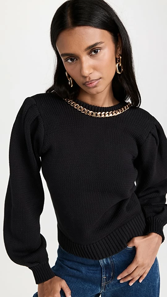 Autumn Cashmere Sequin Diamond Stitch Crew Sweater With Eyelash Trim Black