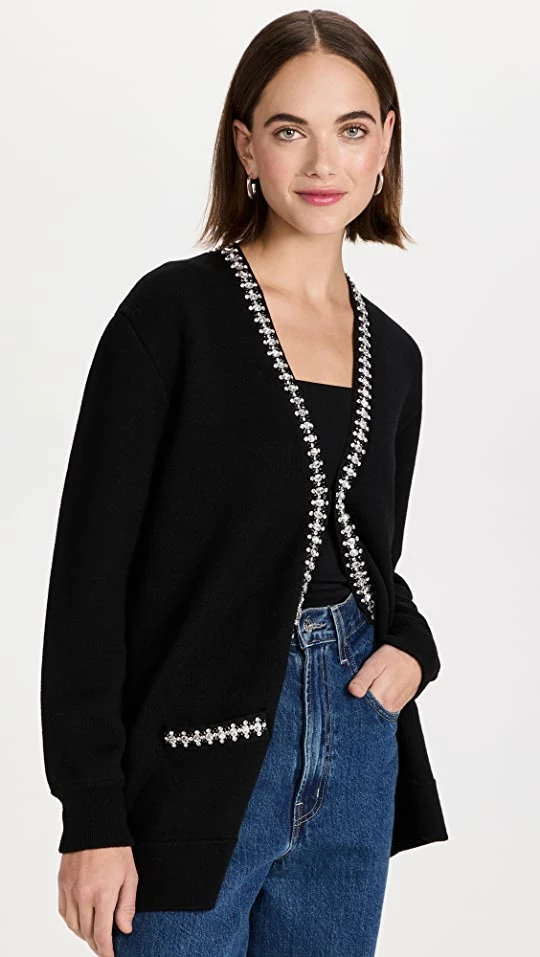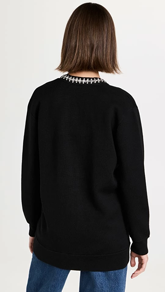Autumn Cashmere Sequin Diamond Stitch Crew Sweater With Eyelash Trim Black