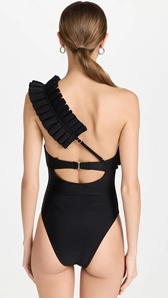 A gorgeous one piece to make your swim style stand out from the crowd. This Andrea Iyamah swimsuit features an asymmetrical, pleated ruffle and a structured silhouette with a subtle back cutout.