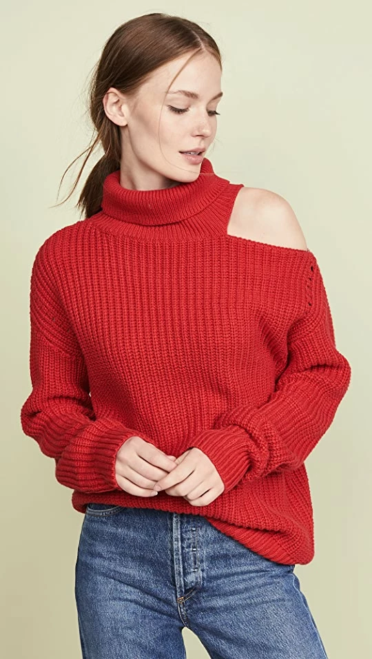 This ASTR the Label sweater proves that you don’t always have to sacrifice flirty for comfy—so whether you tuck this piece into jeans or a trim pencil skirt, go ahead and show a little shoulder.