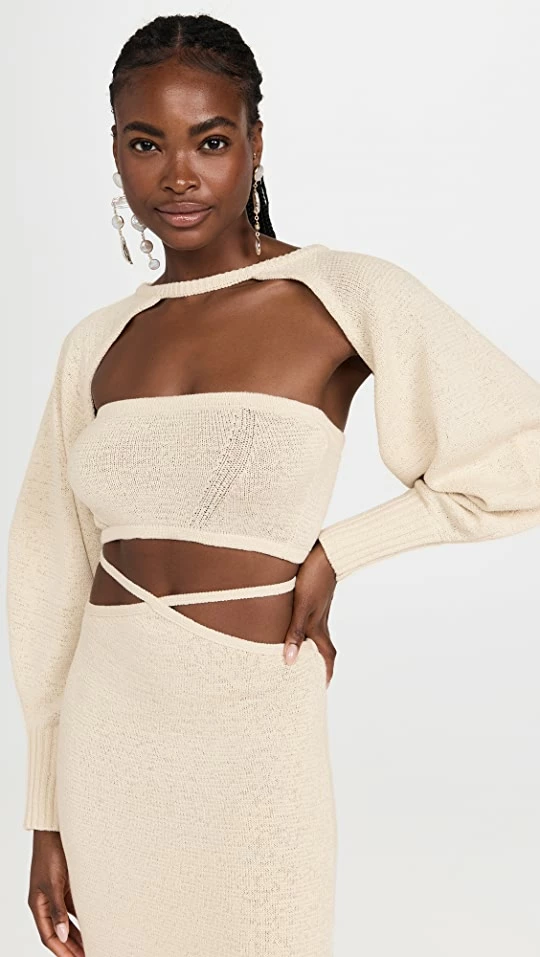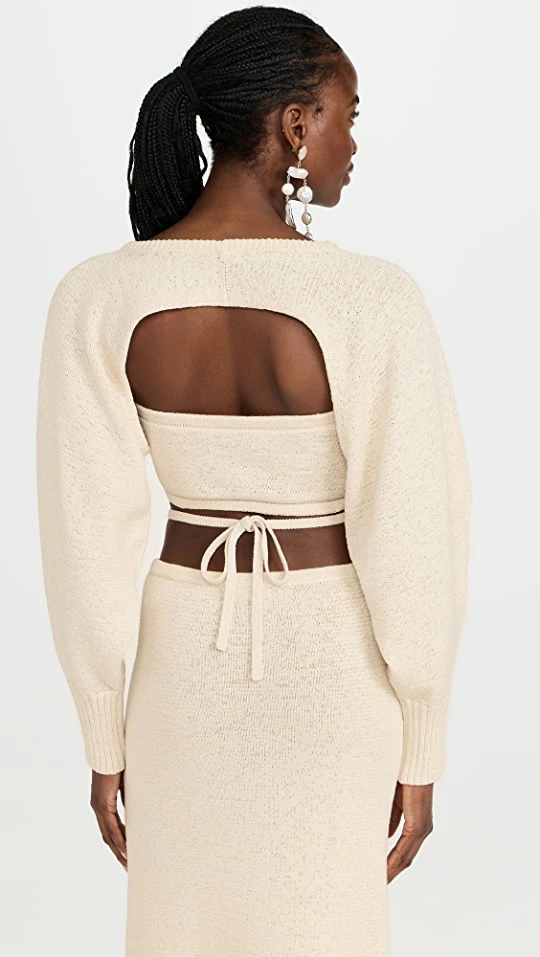 - Crew neck and long puff sleeve sweater