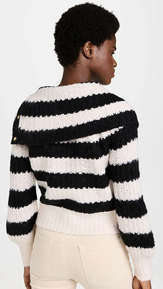 Autumn Cashmere Sequin Diamond Stitch Crew Sweater With Eyelash Trim Black