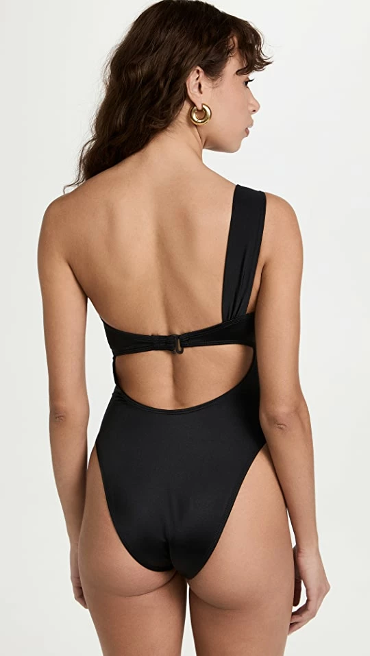 This Good American swimsuit is pattern-free and neutrally colored, but still cuts an eye-catching silhouette thanks to a unique one-shoulder neckline and a substantial front cutout.