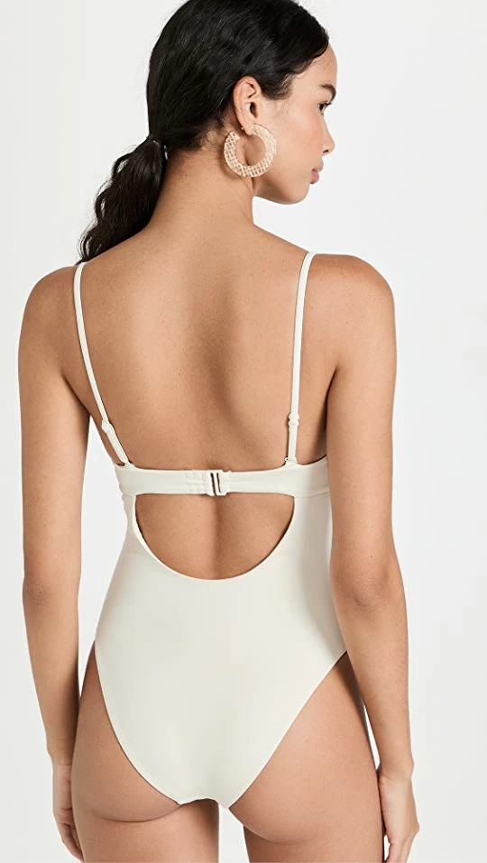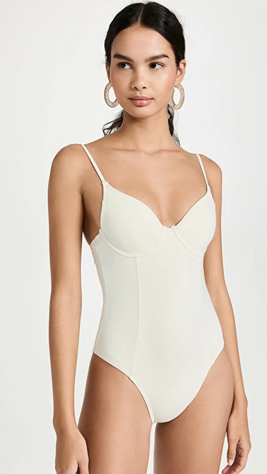 Sleek and simple, this Good American swimsuit features a monochrome silhouette, adjustable straps, and underwire cups.
