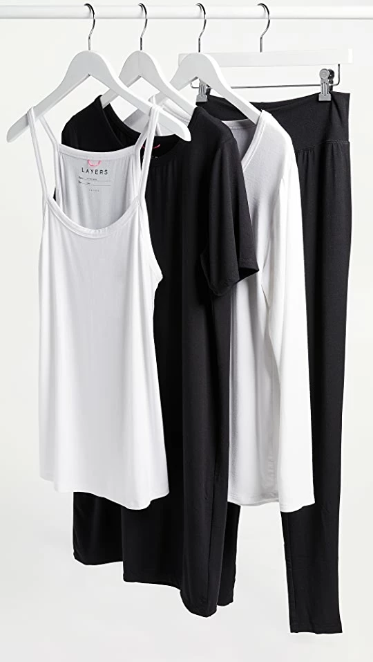 The perfect gift for moms-to-be, this HATCH maternity set contains 4 super-soft black-and-white basics in one tidy package.