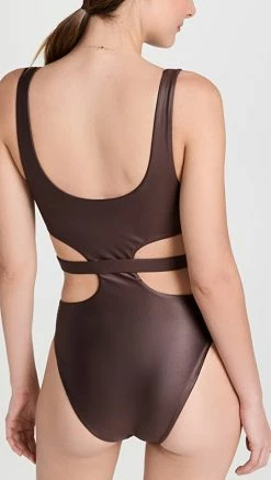Jonathan Simkhai Cambria Sheer Alpaca Off Shoulder With Halter Ties Chocolate