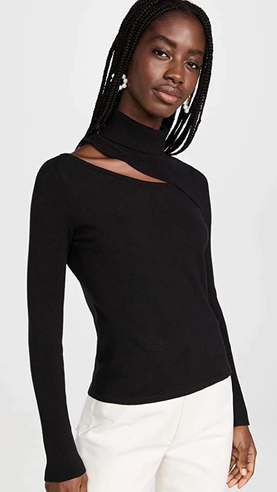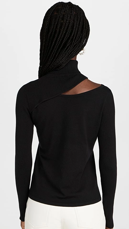 Autumn Cashmere Sequin Diamond Stitch Crew Sweater With Eyelash Trim Black