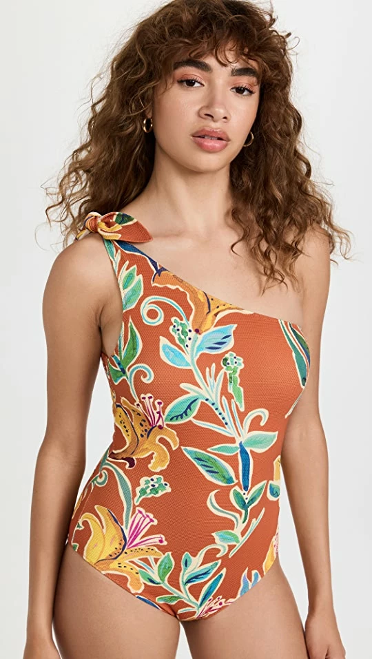 - One-shoulder neckline with tie closure strap