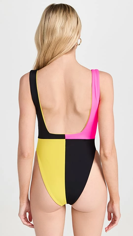 A simple silhouette gets a bold makeover. This MARA HOFFMAN Idalia swimsuit is sure to draw the eye with precise colorblocking in a mix of light and dark shades.
