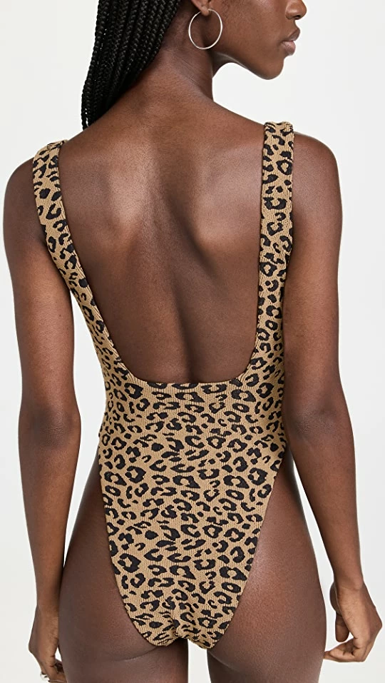 A svelte MARA HOFFMAN swimsuit, given a touch of signature style with a leopard print and crinkly fabric.