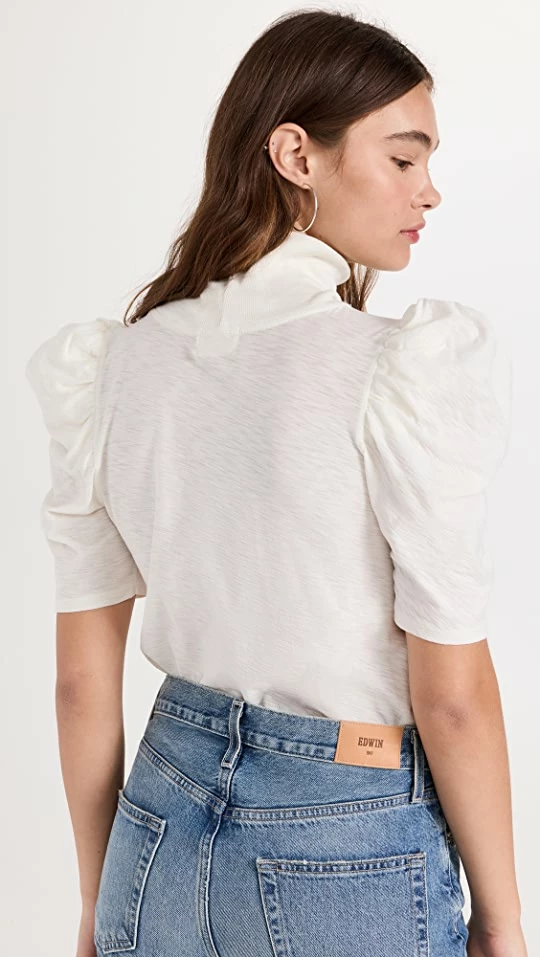 A luxurious update on a classic tee, fresh from Nation LTD. This half-sleeve top is crafted from pure pima cotton for a super-soft feel, and gains a romantic look from puff shoulders and a turtle neckline.