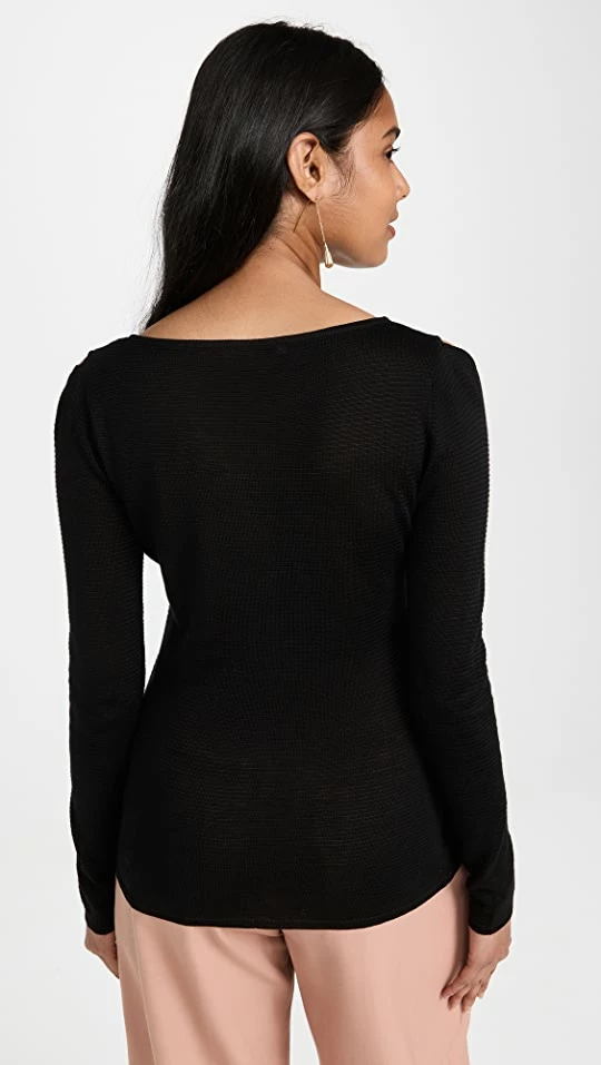 Autumn Cashmere Sequin Diamond Stitch Crew Sweater With Eyelash Trim Black