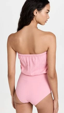 Lisa Marie Fernandez Victor Drawstring Maillot One Piece Swimsuit Vintage Pink Seersucker