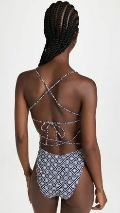 Tory Burch Chevron Stripe Short Sleeve Polo French Cream/Medium Navy
