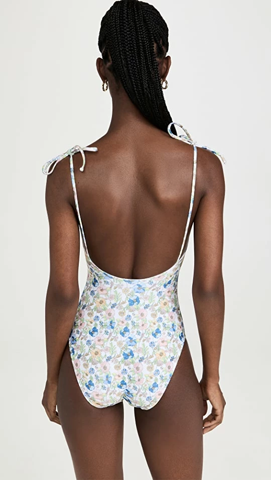 A timeless Shoshanna one-piece swimsuit, featuring a classic square neckline and a pretty floral pattern.