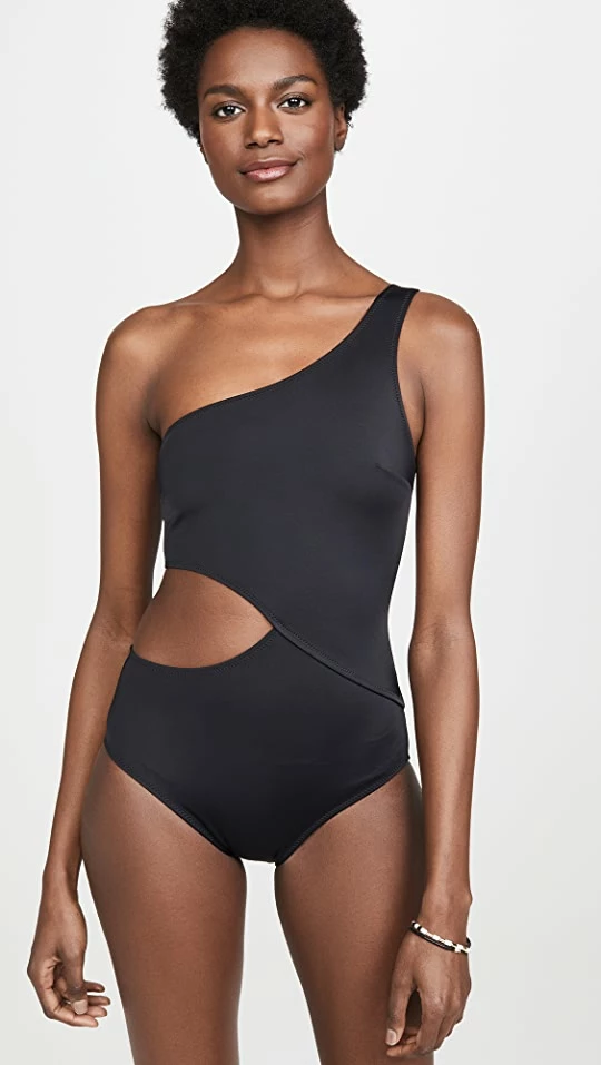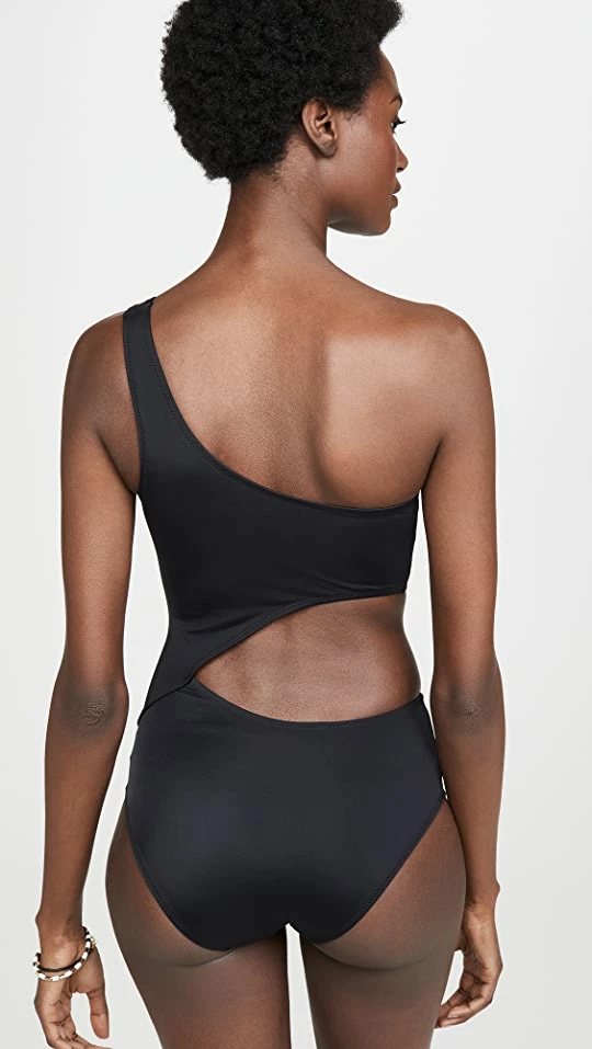Accentuated by a one-shoulder neckline and side cutout, this Solid & Striped one-piece is a sleek, flirty beach-day look.