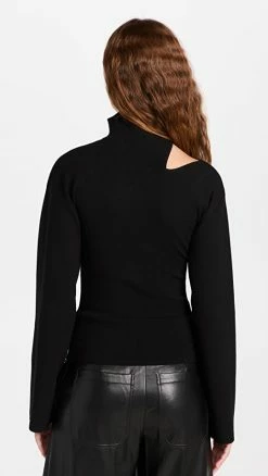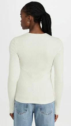 3.1 Phillip Lim Bi Color Rib Long Sleeve Cardigan Eclipse-Off White