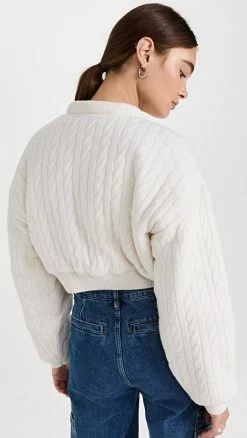 Alexander Wang Cropped Cardigan With Crystal Tubular Neckline Ivory