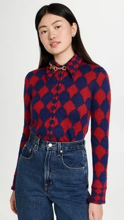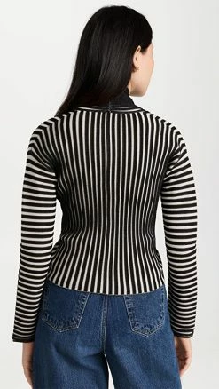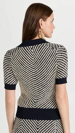Tory Burch Chevron Stripe Short Sleeve Polo French Cream/Medium Navy