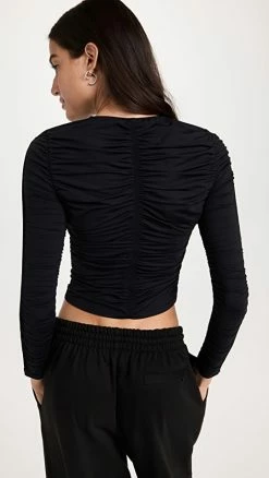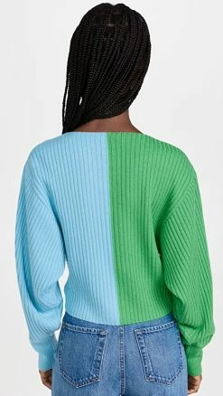 Alice + Olivia Justina Woven Combo Long Sleeve Sweater Black Combo
